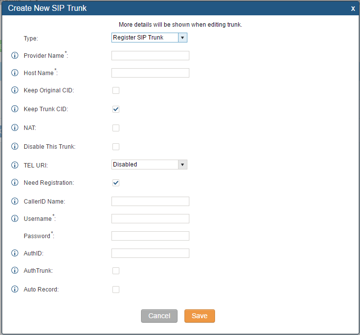 You will now see a window called Create New SIP Trunk as seen in Figure 4 below.